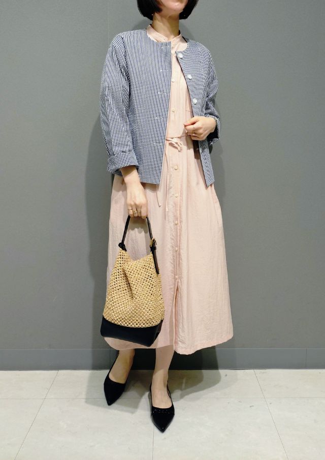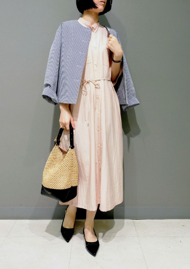 きれいカラーのワンピには、ギンガムチェックのジャケットを羽織って、少しきちんと感のあるお出かけコーデに✨