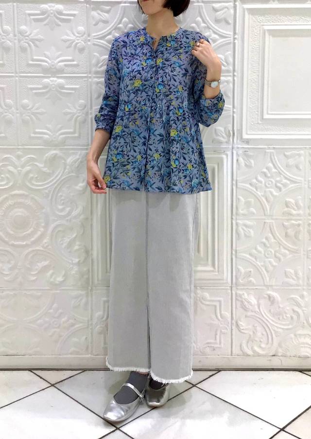 さらっと涼しいリヨセルのリバティブラウス+デニムのロングスカートなら、すぐに活躍します!