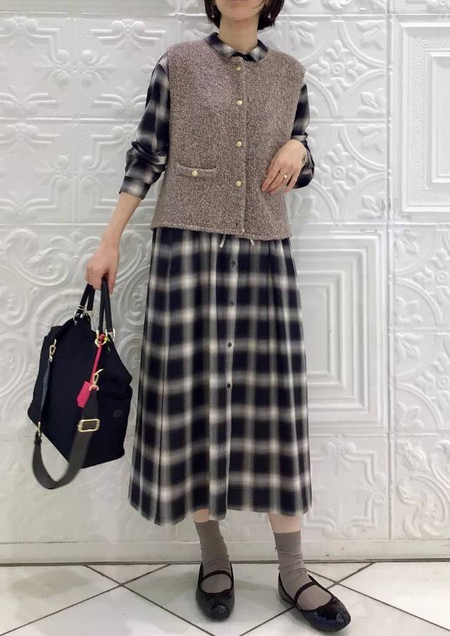 今おすすめのロング丈のシャツワンピに、ベストを合わせてほっこり&クラシカルに✨