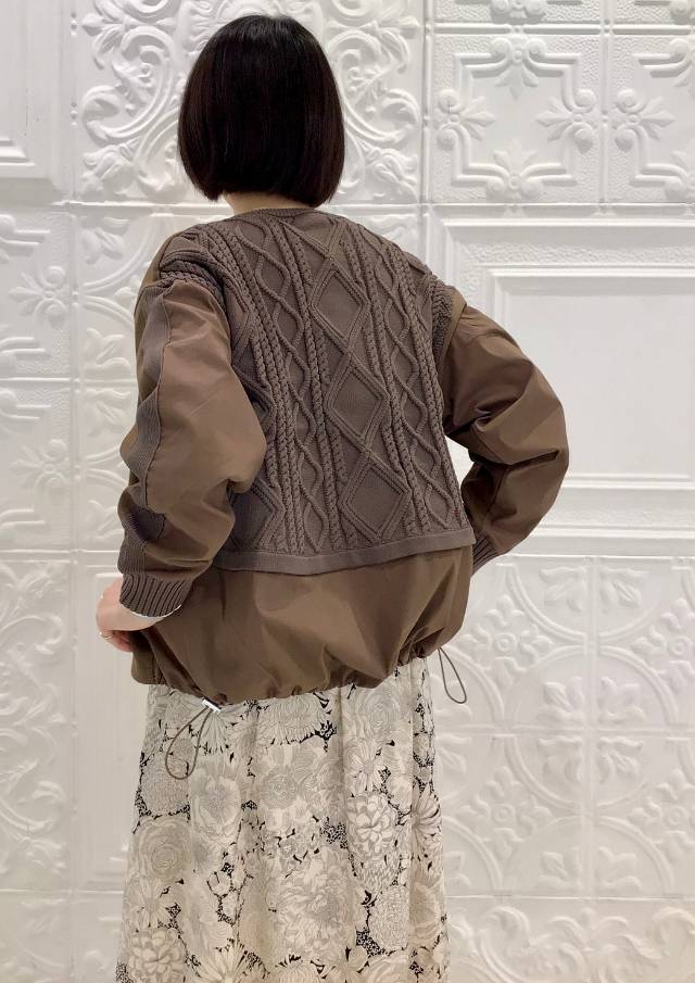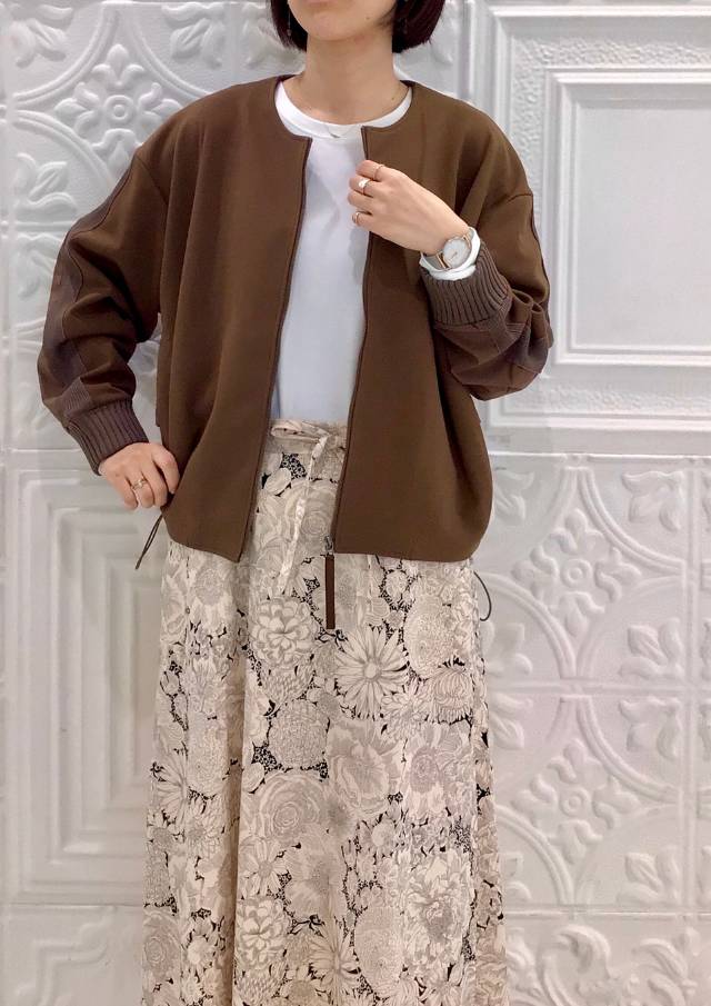 店頭で人気🌟ダンボール×ニット切り替えブルゾンは、気軽に羽織れるものをお探しの方にぴったりです🍂