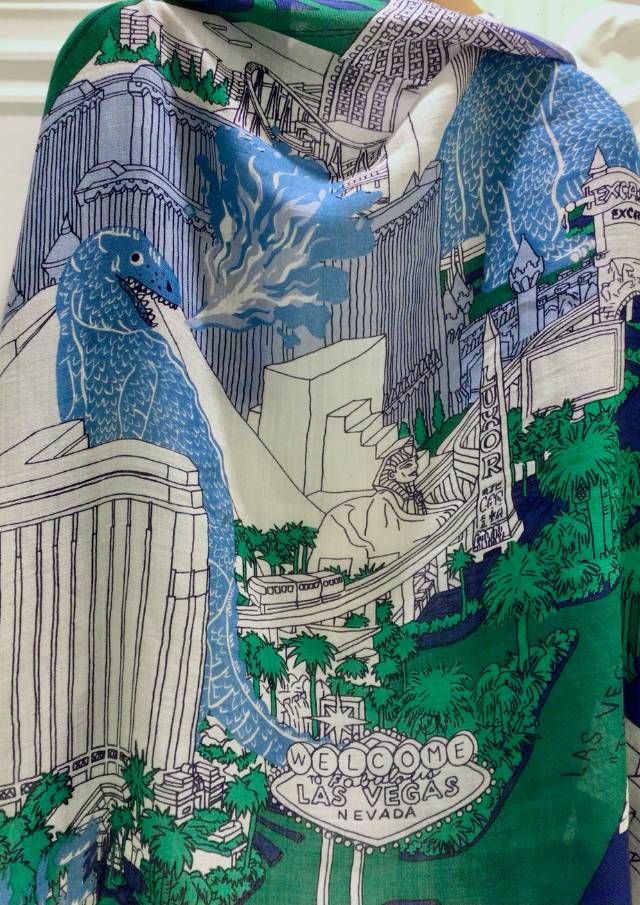 恐竜がラスベガスの街を闊歩する…🦖ユニークなプリントです。