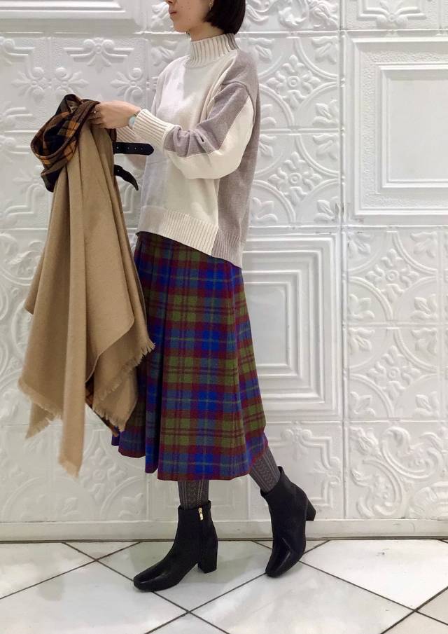 スカートは短め丈(73cm丈)が新鮮💚ブーツ合わせがおすすめです🙆