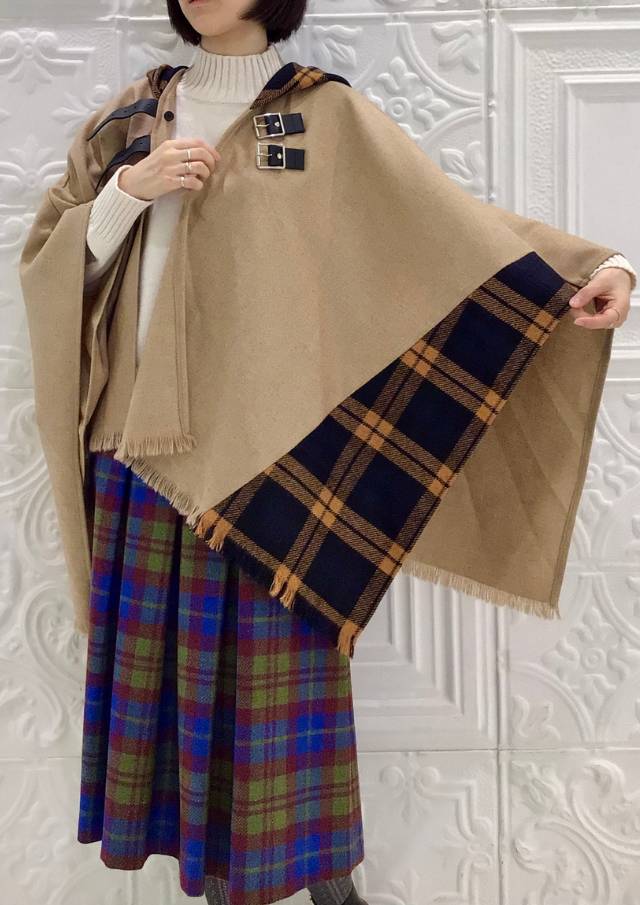 オニールのケープ&スカートを使った贅沢なコーデです✨