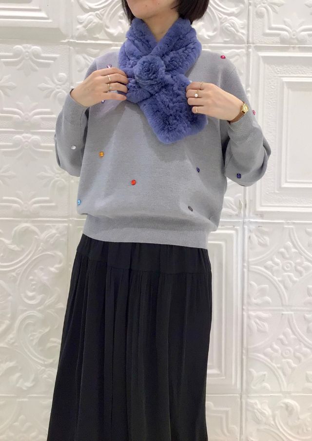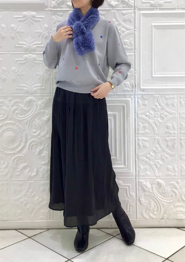 ニットにはあえて軽い素材の柔らかいスカートを合わせるのも◎