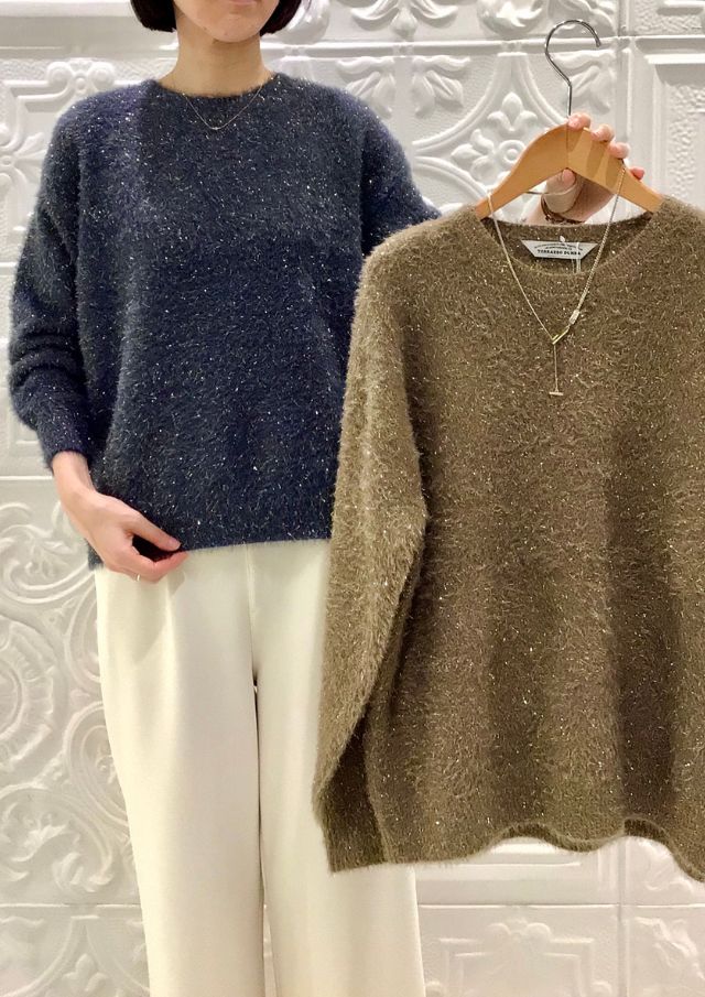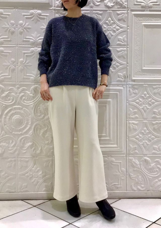 キラキラ✨1枚着るだけで華やかなシャギーニットを白パンツですっきりと⛄️