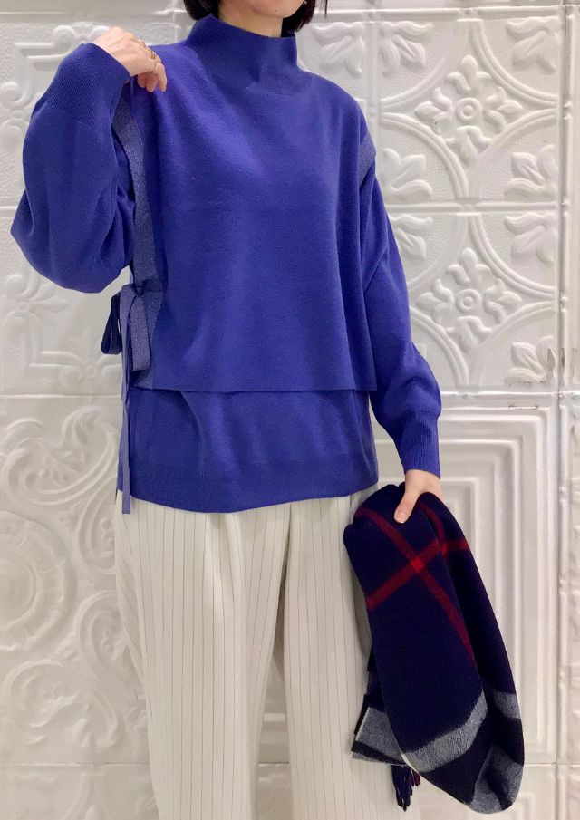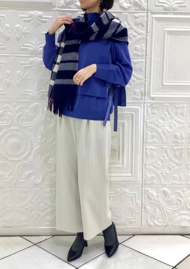 明るいカラーのワイドパンツと春先まで活躍します🌟