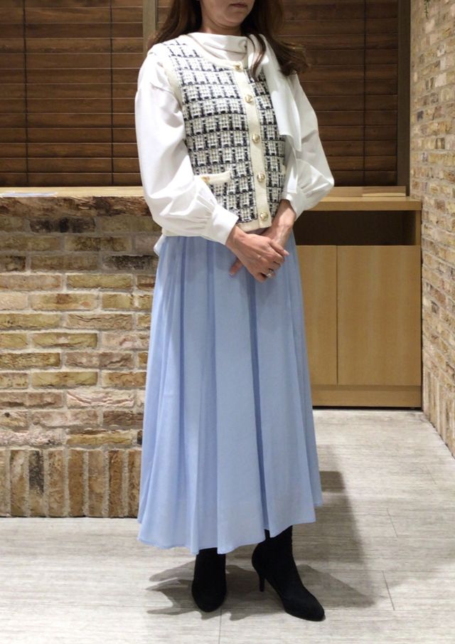 今から春まで着られるブラウス&ベストのコーデをご紹介致します。