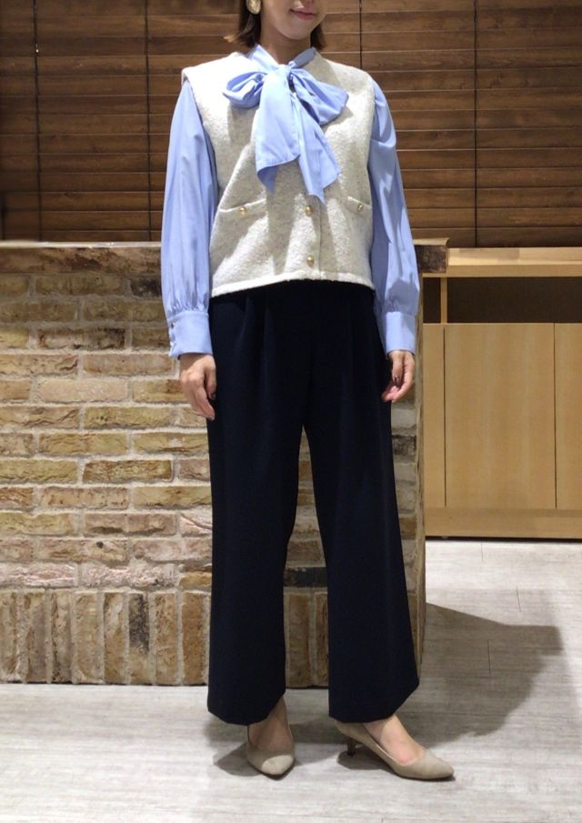 今から春まで着られるブラウス&ベストのコーデをご紹介致します。