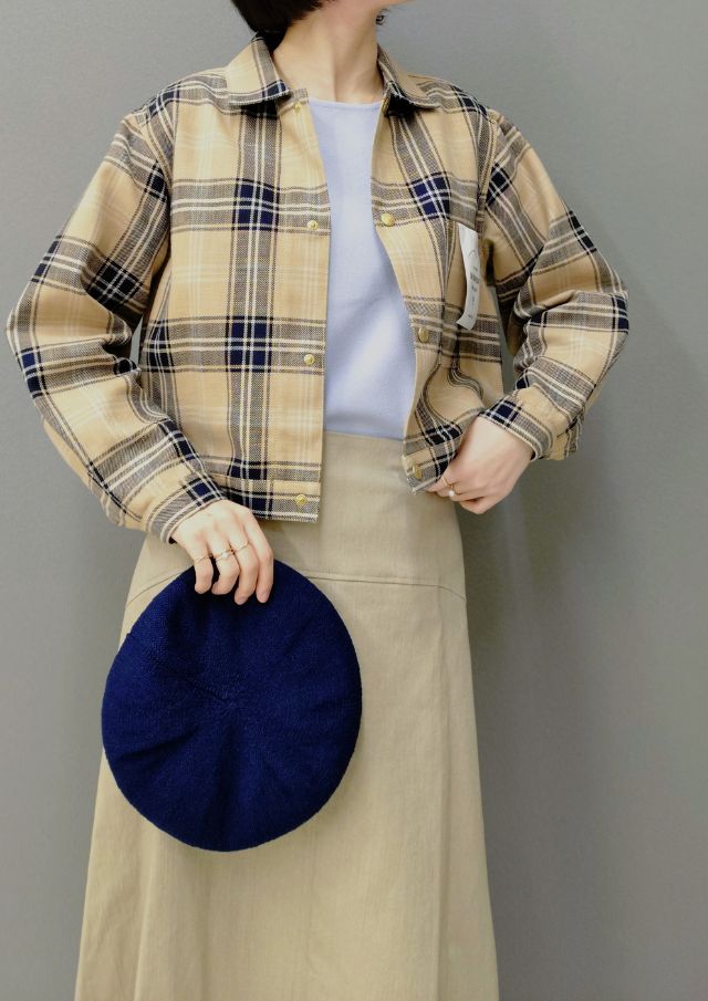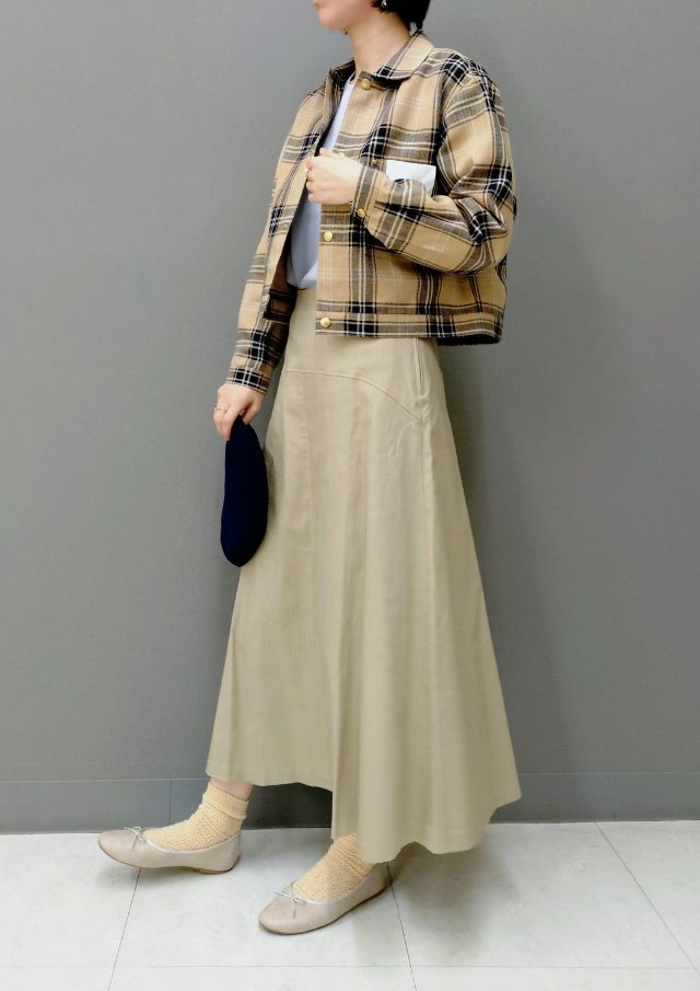 すっきりショート丈はロングスカートやワイドパンツと合わせるのがおすすめです!