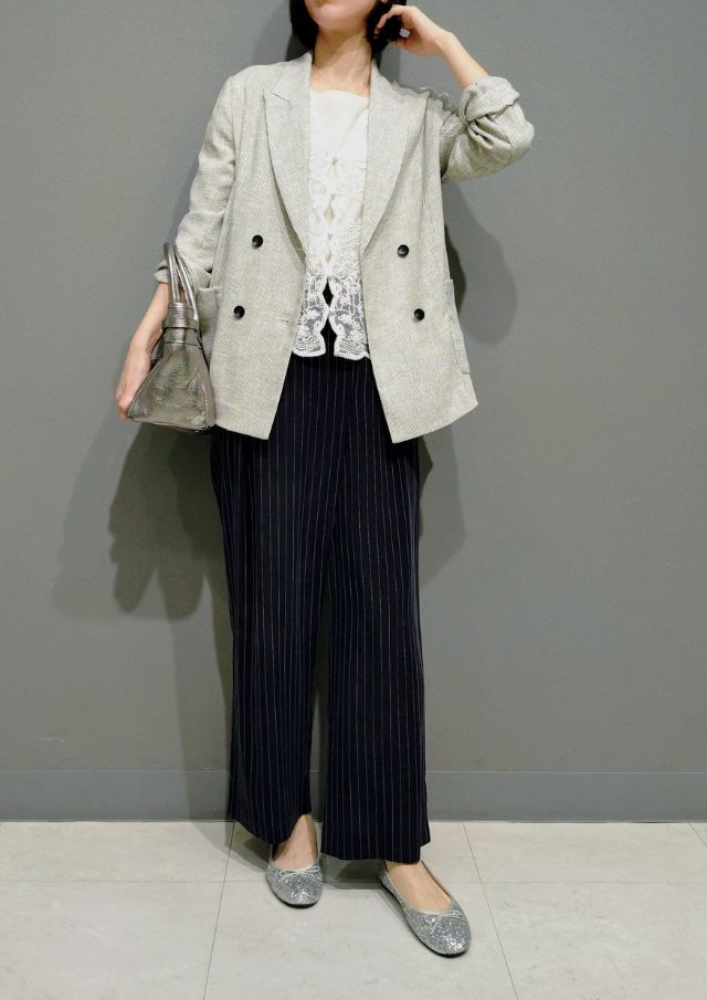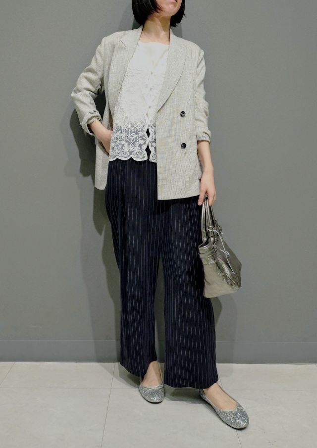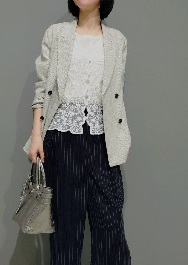 ジャケットなど軽いアウターの中にちらっと見せるのもおすすめです!