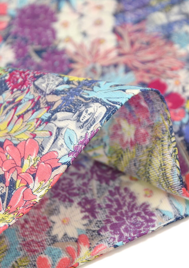 LIBERTYプリントハンカチは、繊細なタッチで描かれている花々に思わず癒されそう。