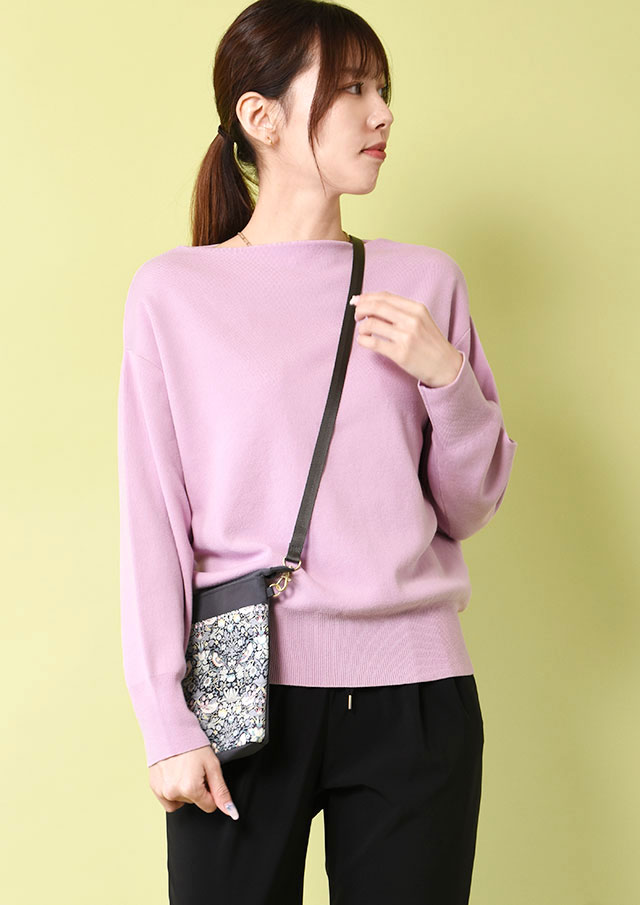 華やかなリバティプリントがスタイリングのアクセントになり、毎日の外出を少し特別な時間に変えてくれます。