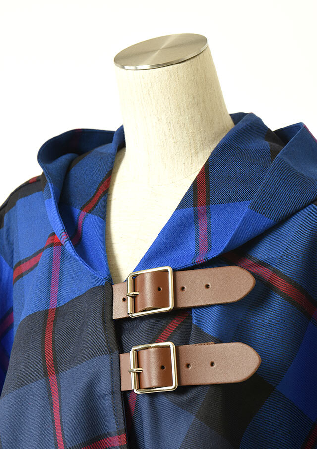 胸元のバックルベルトは高級感のある牛革を使用し、こだわりのディテールにも注目!