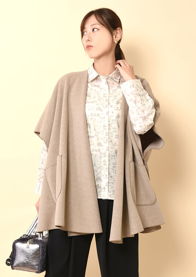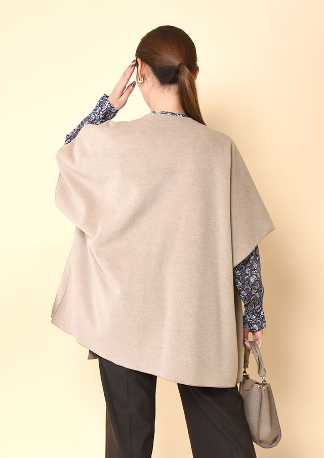 ドロップショルダーで肩のラインをやわらかく見せ、ゆったりとしたシルエットながら軽やかな印象に。