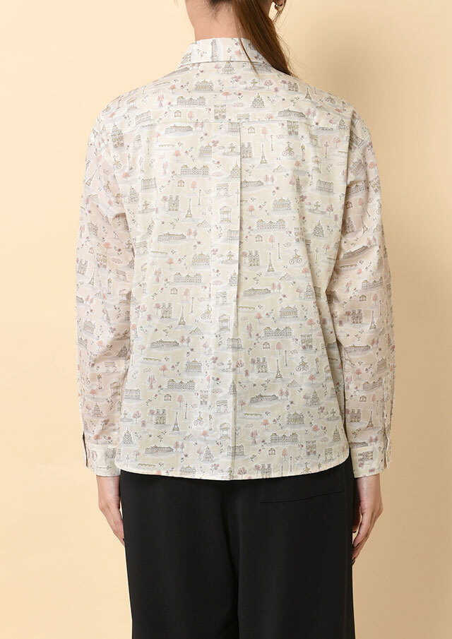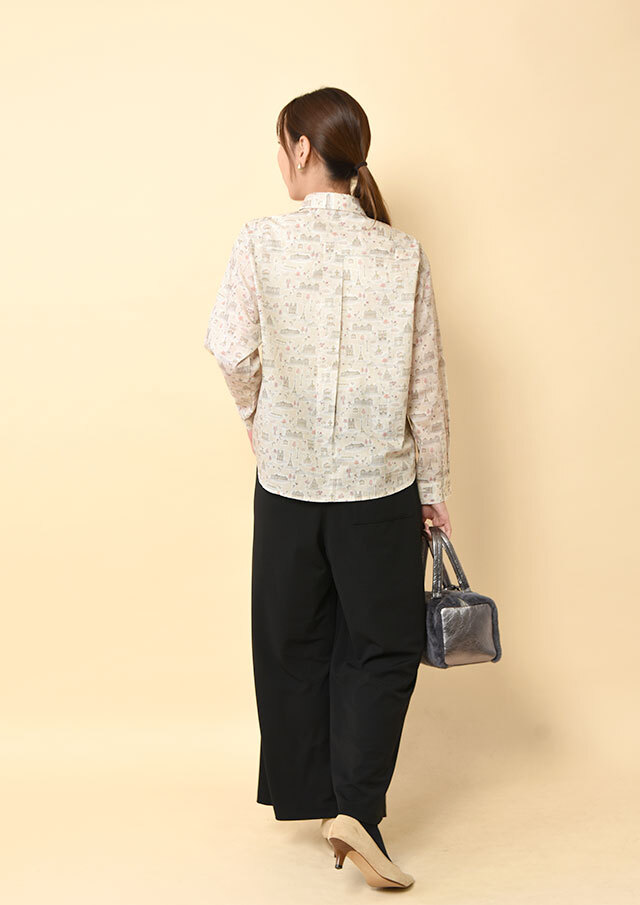 タック入りのバックヨークが、後ろ姿にもアクセントを作り、スカートやワイドパンツとの相性も抜群。