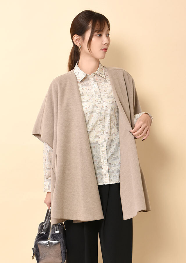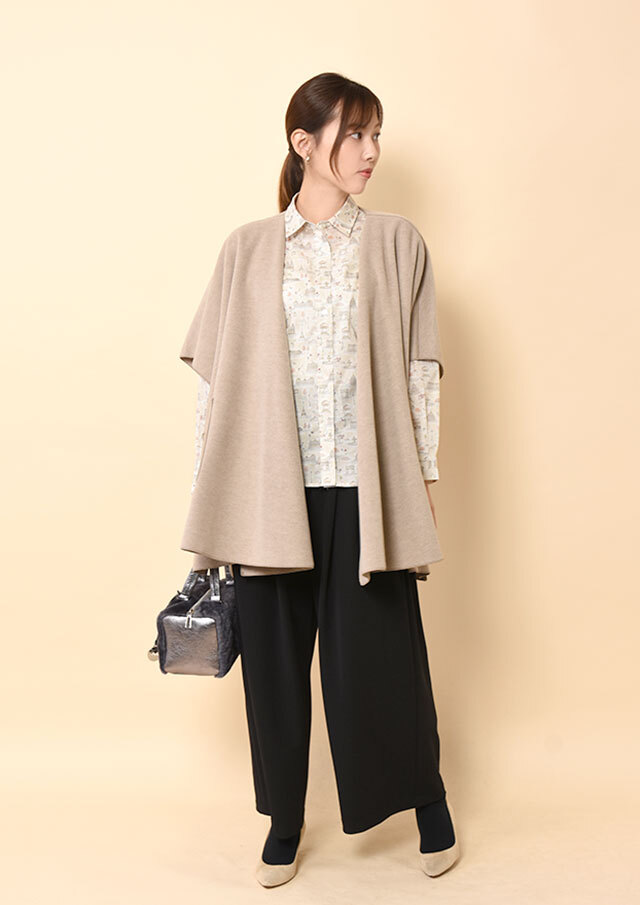 ジャケットやカーディガンのインナーとしても、やわらかな印象を添えるスタイリングが可能です。