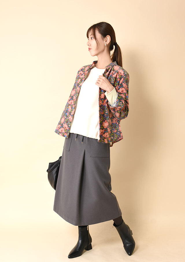 しなやかさとぬくもりをあわせ持つ、リバティプリントのコーデュロイ生地を使用。