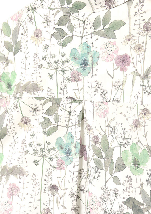 上質なシルクのツヤと手触りを木綿で再現するために英国LIBERTY社が独自に開発したローン素材。