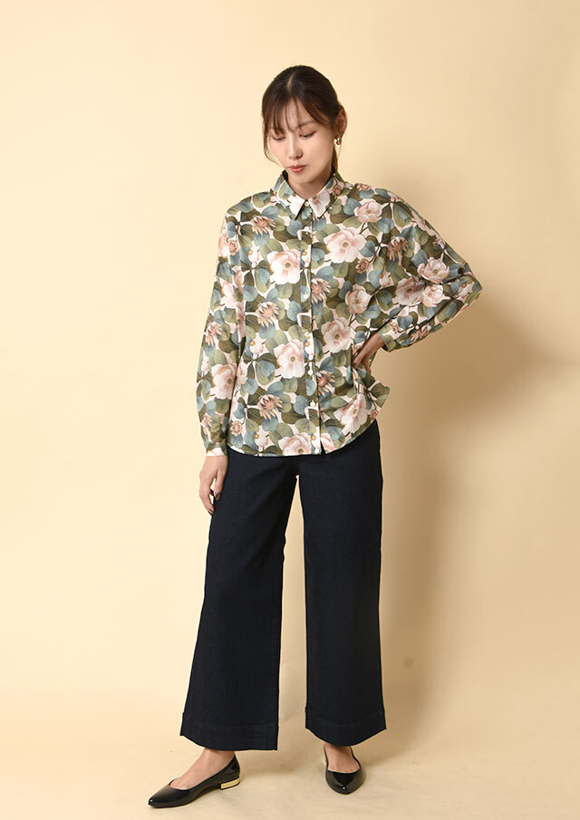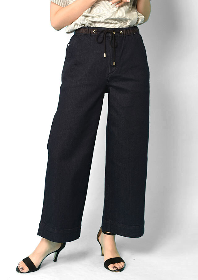 足どおりがなめらかで見た目にもキレイな表情と、ドレープ感もあり上品な肌ざわりのニット風デニム。