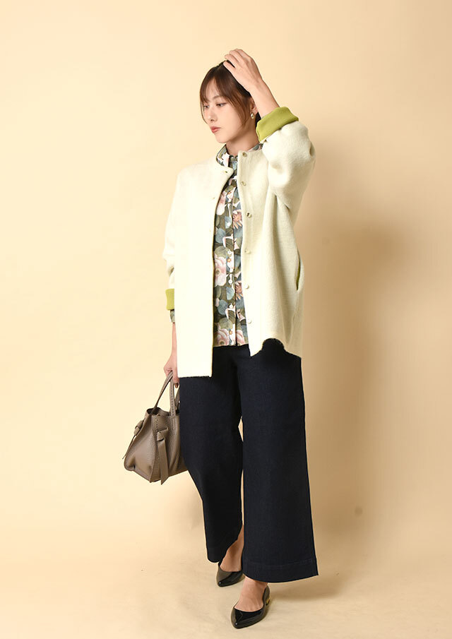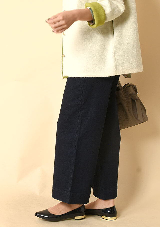 トレンドのワイドシルエットで、小柄な方でも穿きやすい丈感なのがポイント。