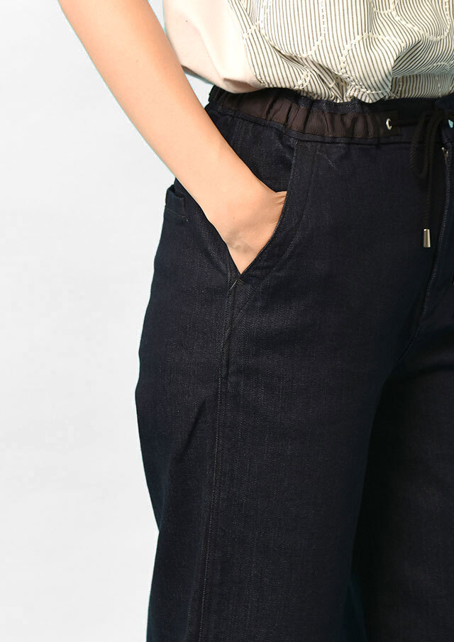 デニムと同じ構造で織られているので、ニットのような伸縮性をもちながら型崩れしづらく軽い穿き心地になっています。