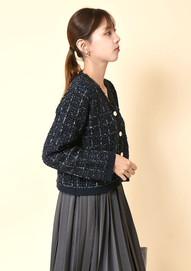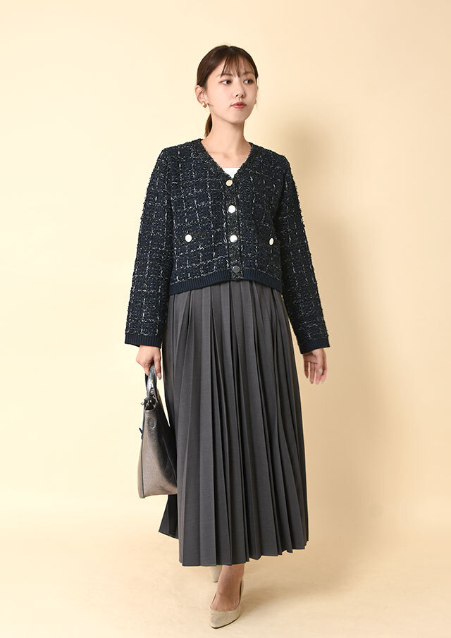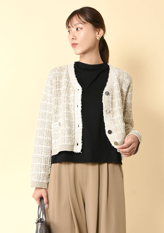 ツイードの上品さと、ニットのやわらかさをひとつに
