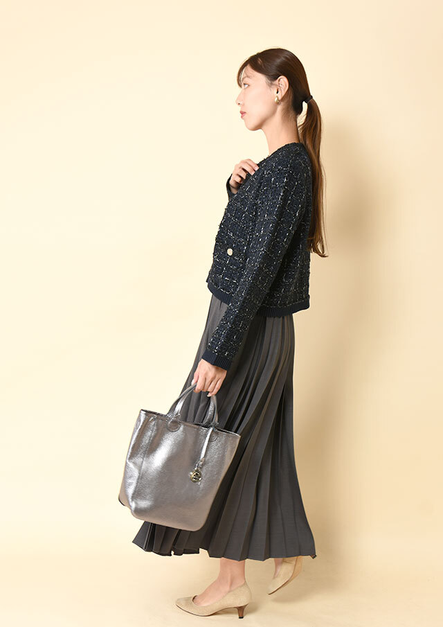 アイラインスカートと合わせれば、通勤にふさわしいクラシカルなオフィススタイルに。