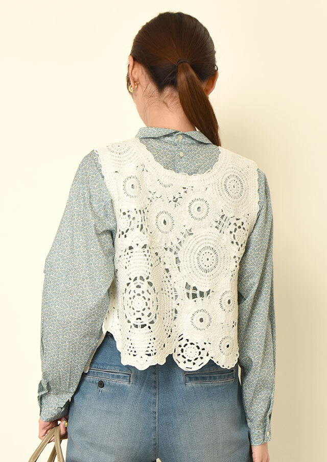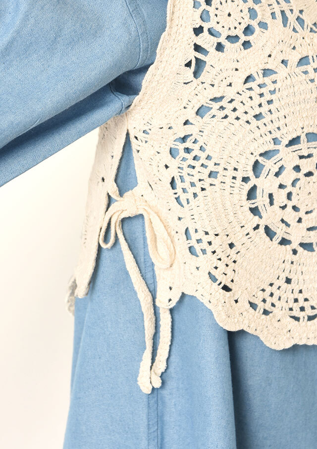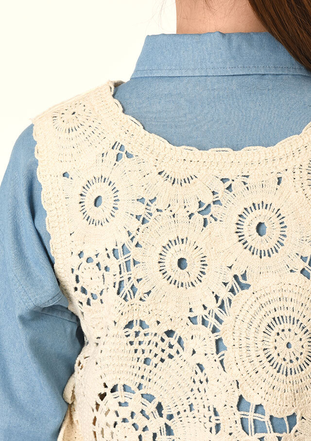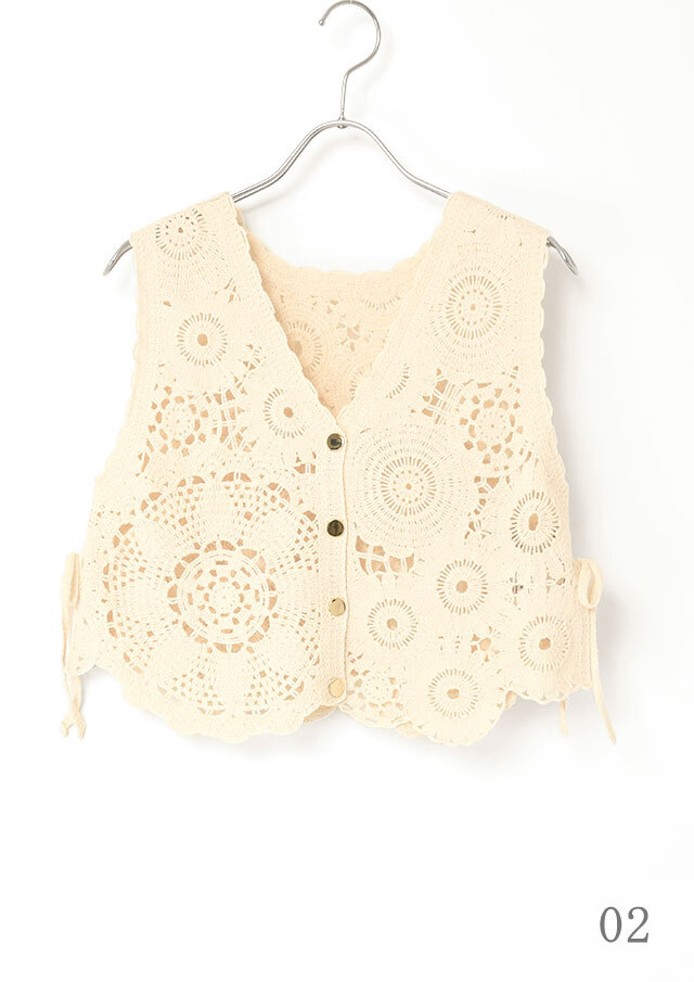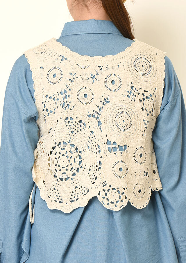 コットン100%のクロシェ編みを使用したショートベスト。
