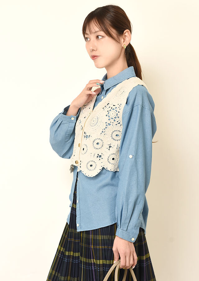 シャツやブラウスの上からサッと重ねれば、程よくフェミニンなレイヤードスタイルに。