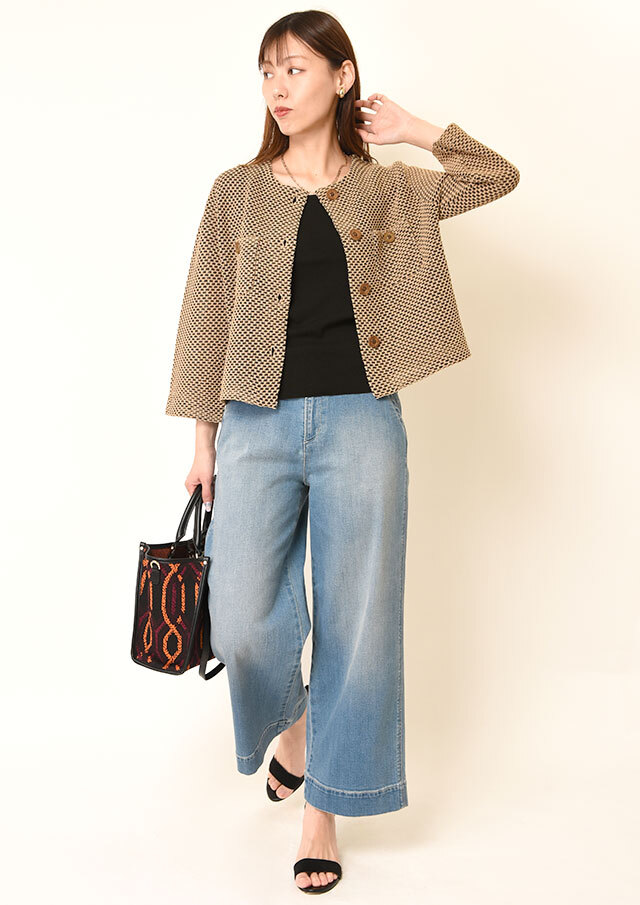 コンパクトな丈がウエスト位置を自然に引き上げ、全体をスッキリ見せてくれます。