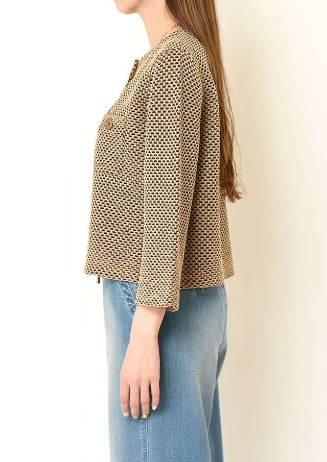 デニムと合わせてもラフになりすぎず、胸元のポケットとボタンが品よく効いて大人の日常に馴染みます。
