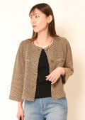 ボタンを留めてブラウスを忍ばせれば、軽やかなニットジャケットのような雰囲気に仕上がり、会食やお出かけにも◎