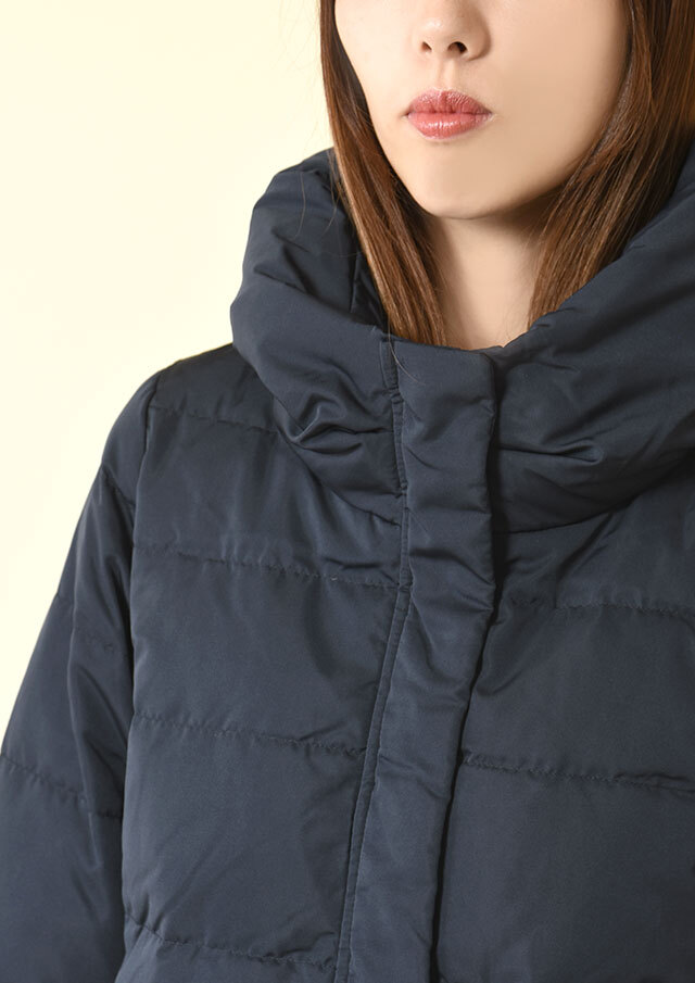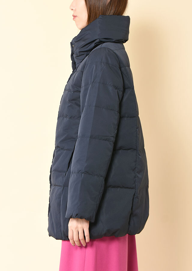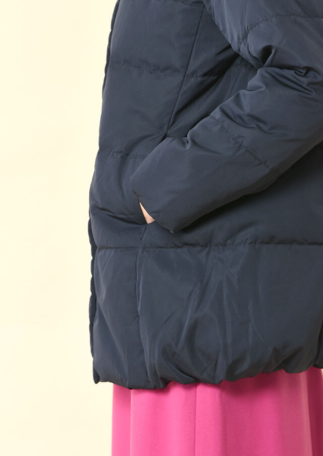 軽やかなポリエステル素材を使用し、スッキリとした見た目に仕上げたダウン。