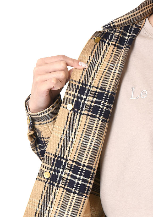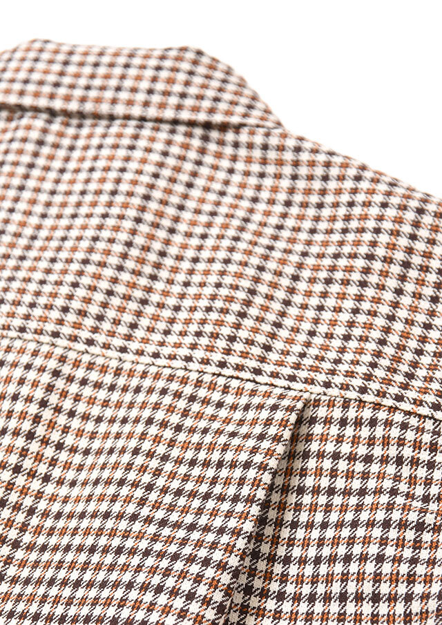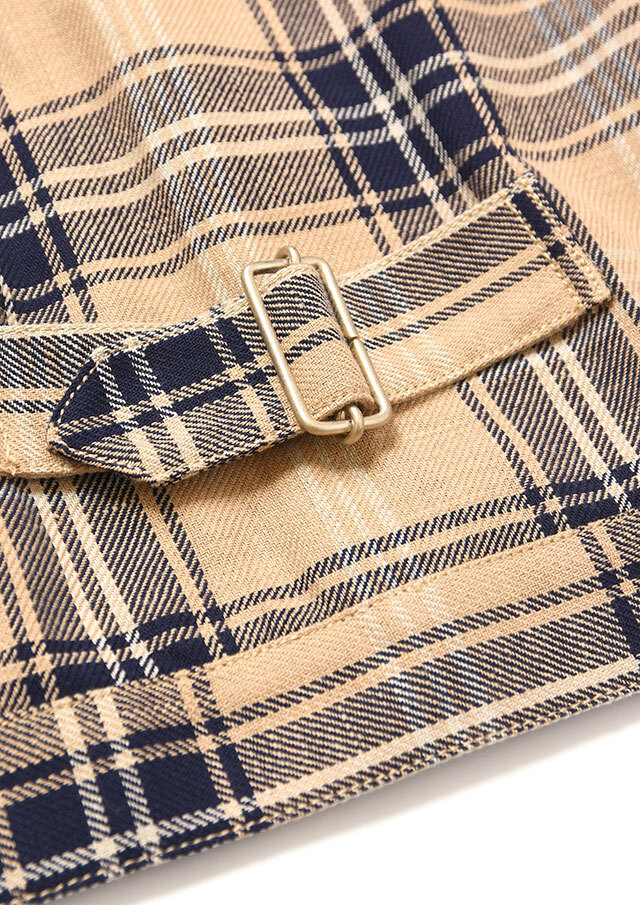 柄はベージュ×ネイビーのタータンチェックと、ベージュ×オレンジ×ブラウンのガンクラブチェックの2パターンをご用意。
