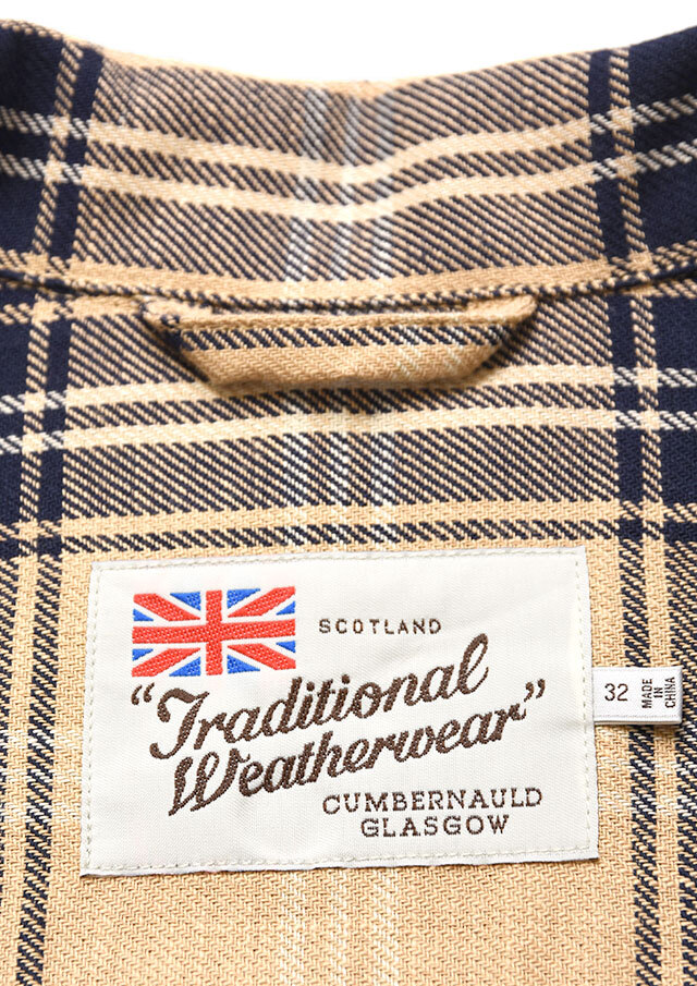 さりげなく刻まれた「Traditional Weatherwear」のロゴが、控えめな品格を添えます。