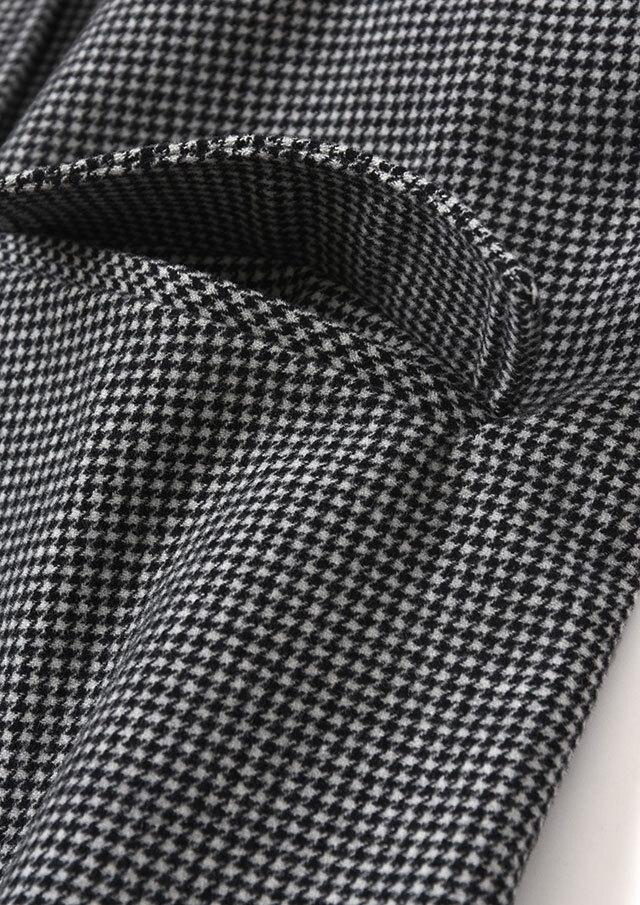全面にあしらった千鳥格子柄が、クラシカルでありながらモダンな表情をプラス。
