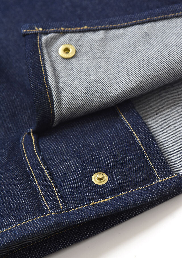 ワンウォッシュ加工で程よくハリがあり、立体的なシルエットを美しく見せます。