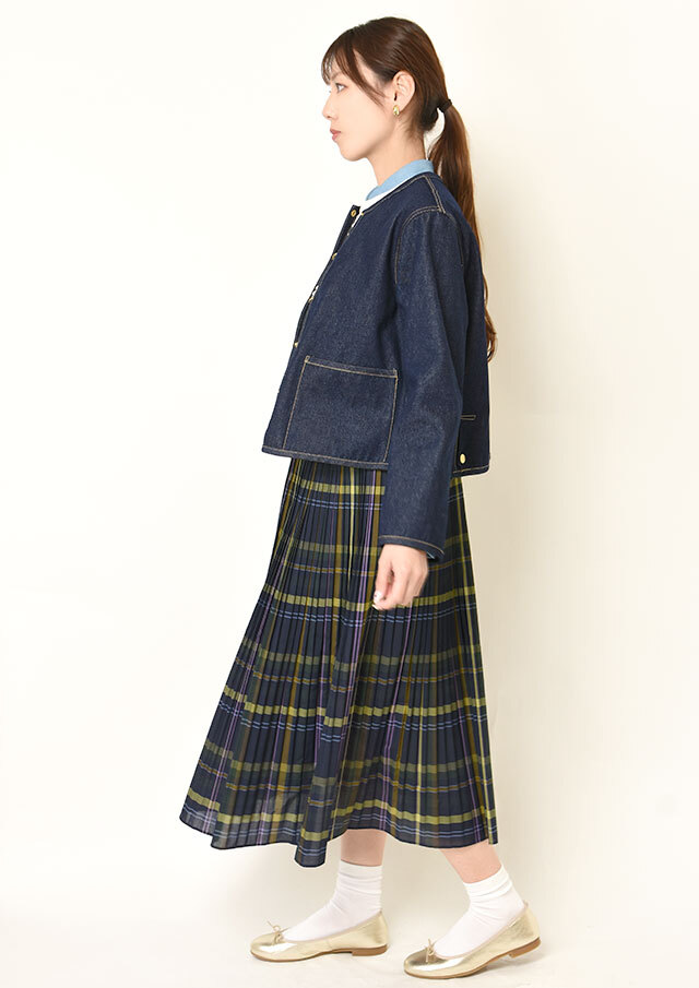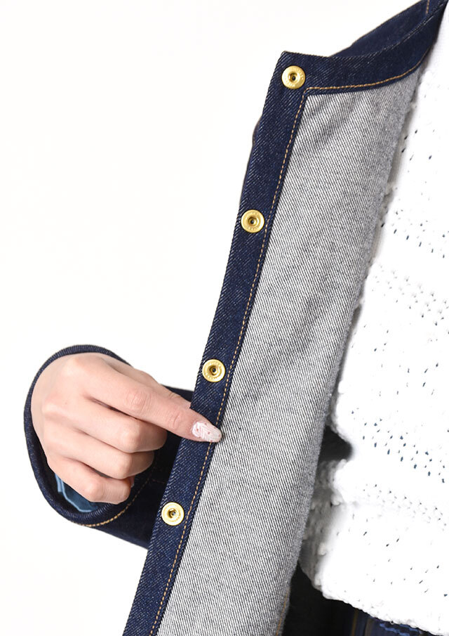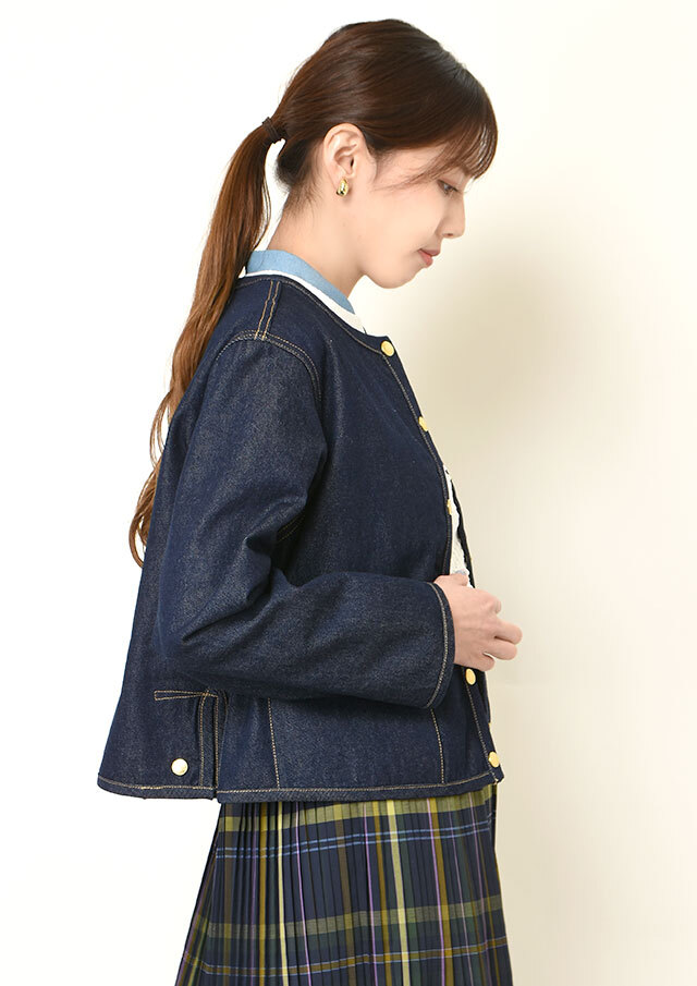 ワンピースやフレアスカートにサラッと羽織れば、やわらかな女性らしさとデニムのカジュアル感が絶妙に混ざったスタイルに。