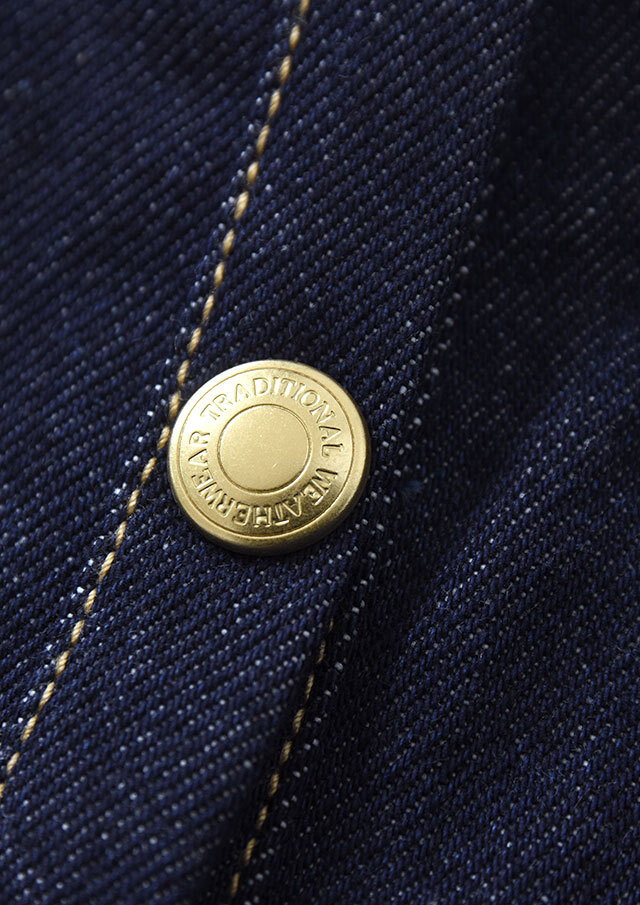 ボタンにはブランド刻印「Traditional Weatherwear」が入り、さりげないアクセントに。