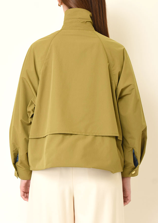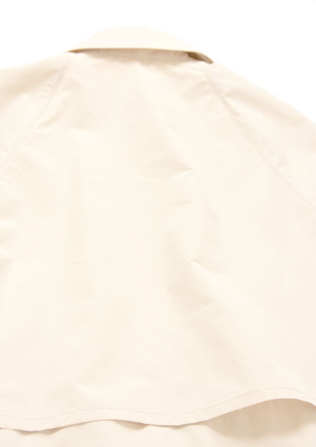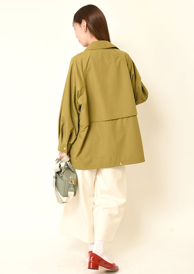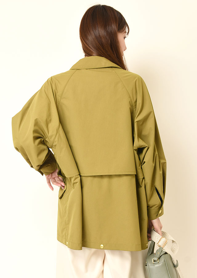 裾を内側に折り返して留めれば着丈が約17cmほど短くなり、ショート丈へと変化する2WAY仕様。