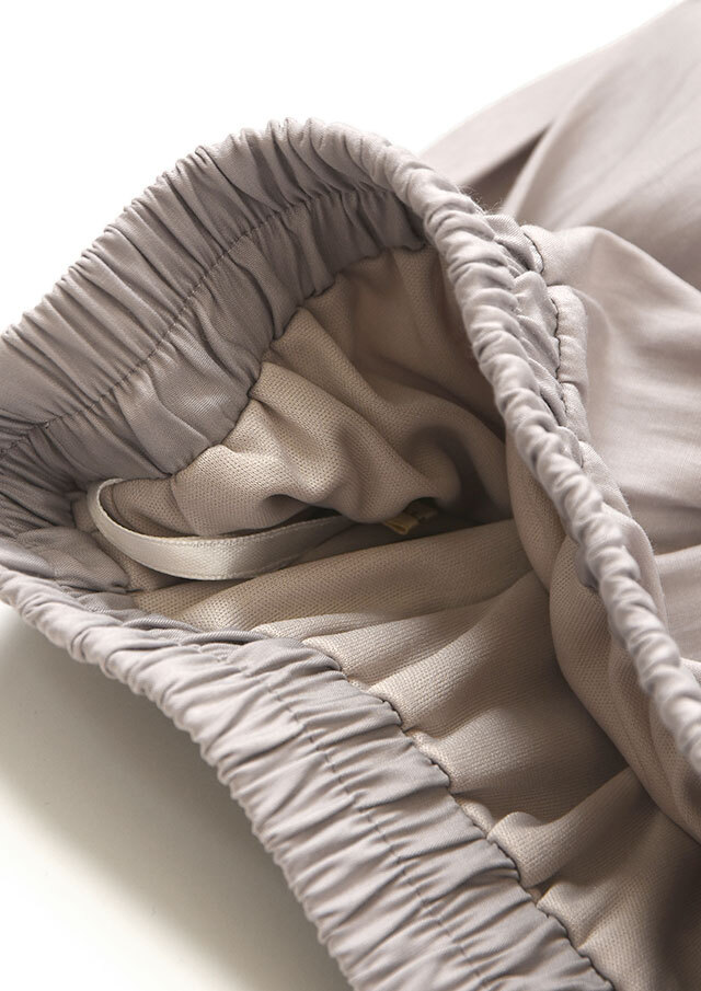 ウエストはゴム仕様で、リラックス感がありながらも自然と腰まわりが整うバランスです。