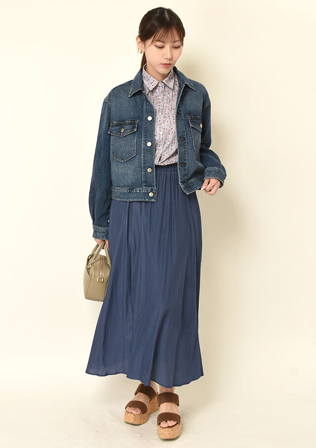 足元はフラットシューズで軽快にまとめても、ヒールで少しキレイめに振っても◎
