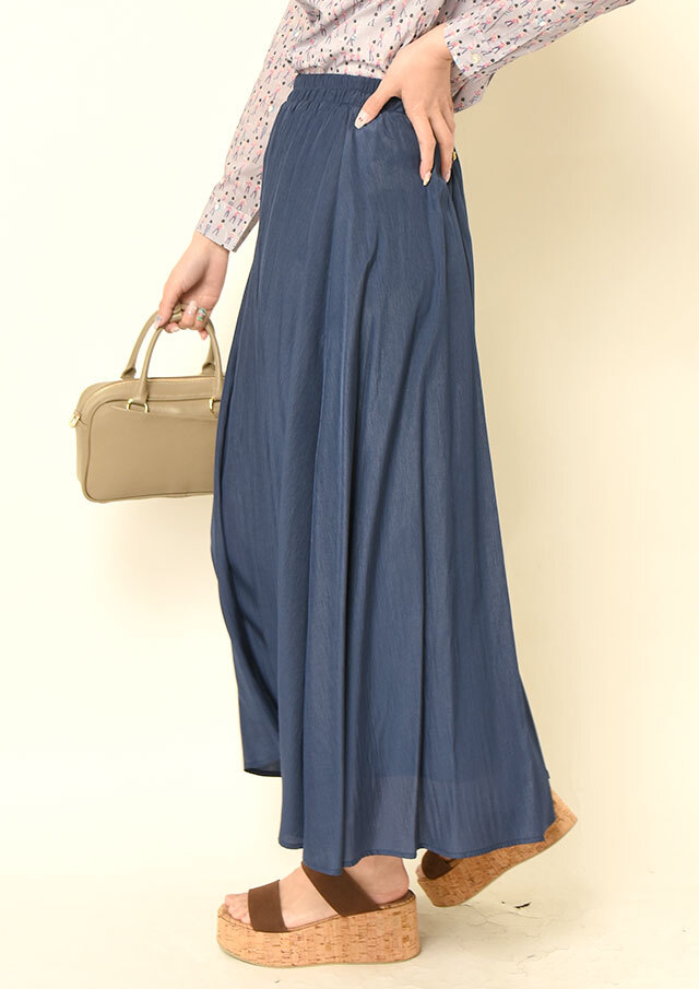 レーヨンブレンドならではの落ち感があり、歩くたびにやわらかく揺れる表情が魅力です。