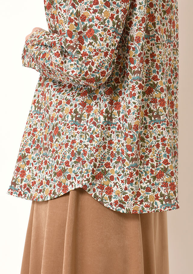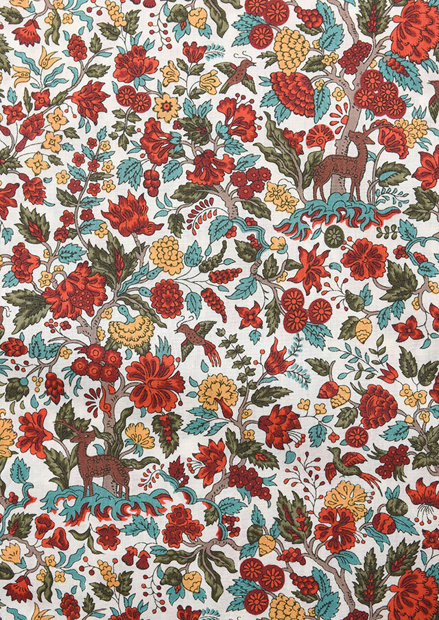 1940年代のリバティプリントをベースにした、魅惑的なカンバセーショナルデザインの「ソルターズ・フォレスト」。