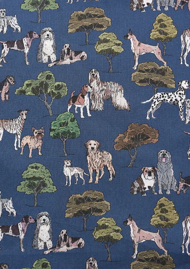 ブルドッグ、ウェルシュ・テリア、ラブラドール、ダルメシアン、ボクサー、オールドイングリッシュ・シープドッグ、アフガン・ハウンド、ブラッドハウンド、ビーグル、シュナウザー、ゴールデン・レトリバー、ポインター、グレーハウンドなど、さまざまな種類の犬が描かれています。