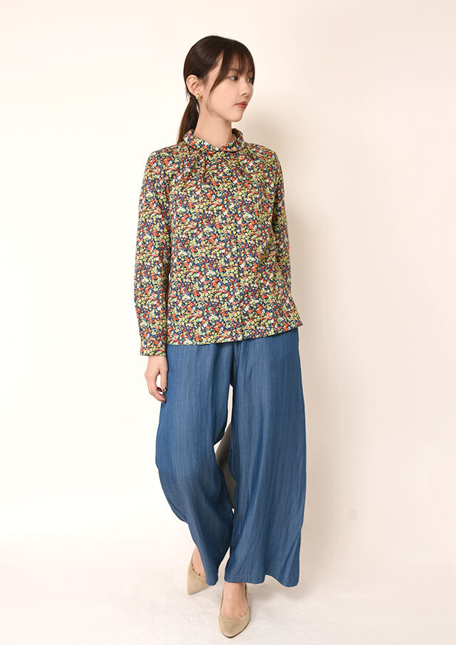 袖口にもタックが入り、動くたびにやわらかいニュアンスが生まれます。