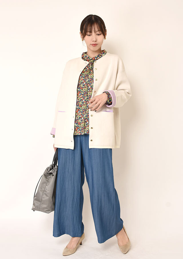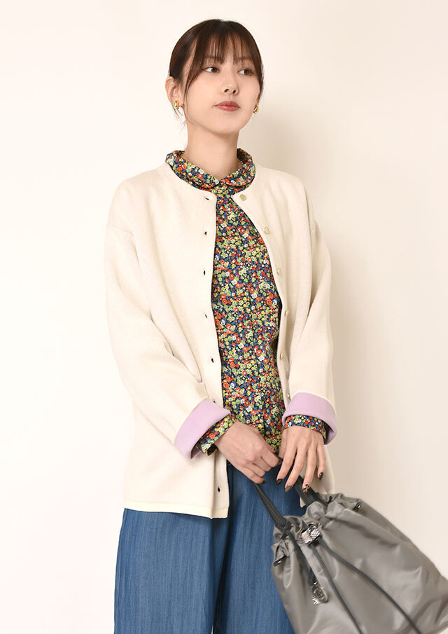 前を開けて羽織として使えば、インナーとのレイヤードで奥行きのある着こなしに。