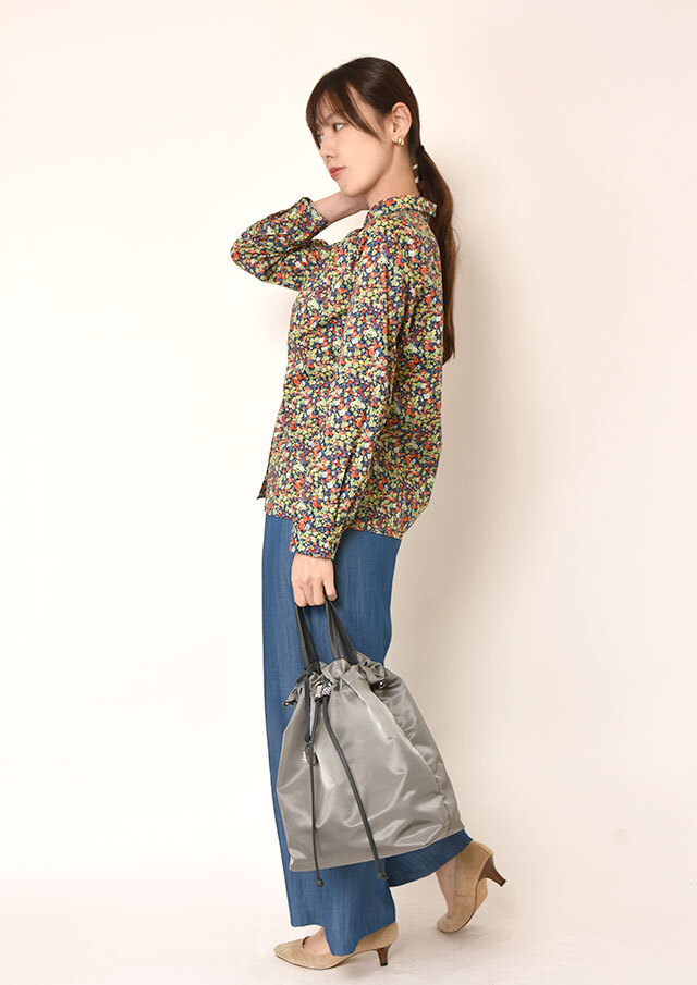寒い季節は薄手のタートルネックやカットソーを中に重ねても、首元や袖のタックがアクセントになり、長い季節活躍しそう。