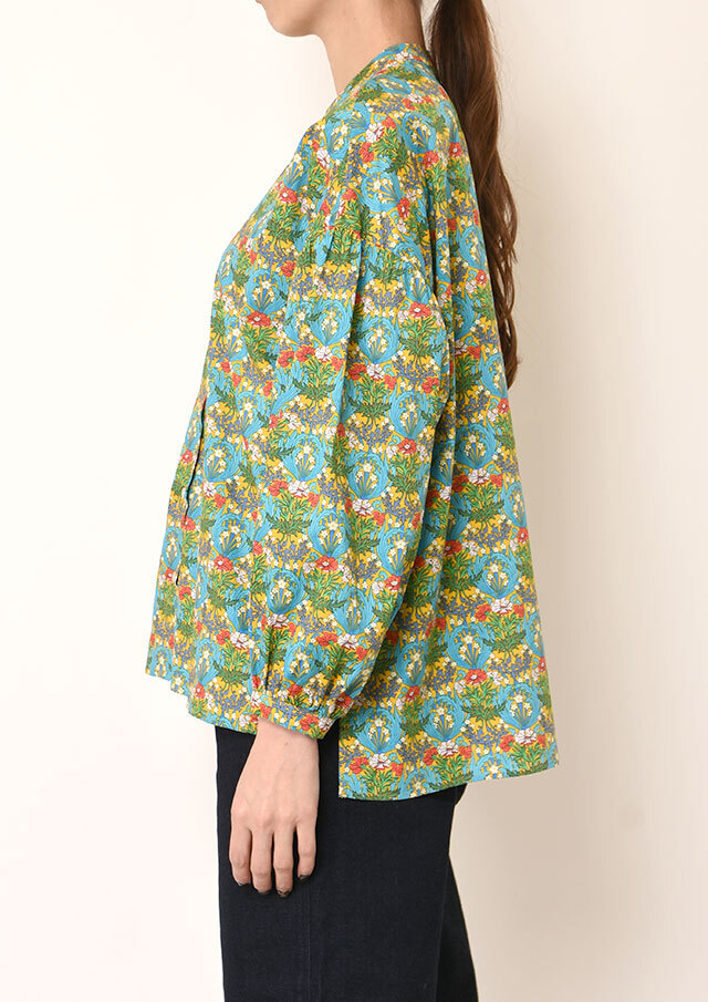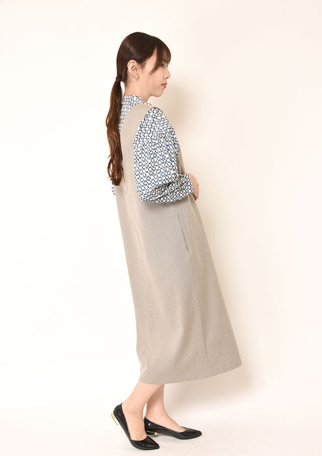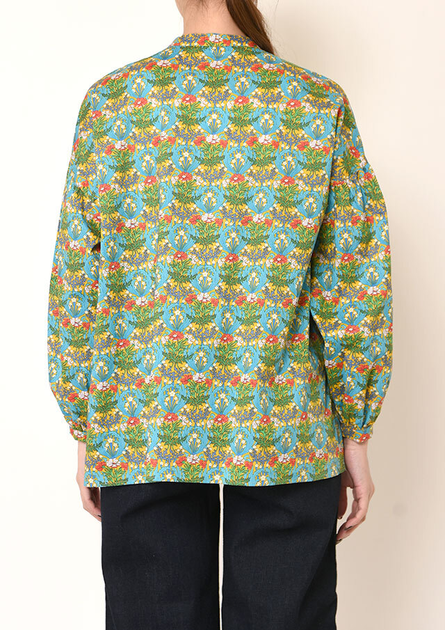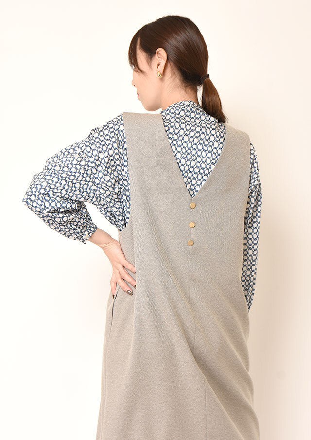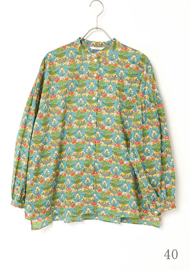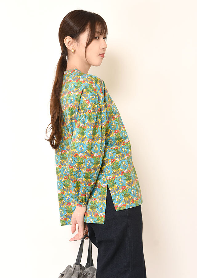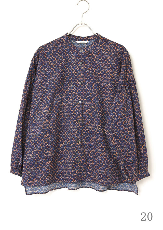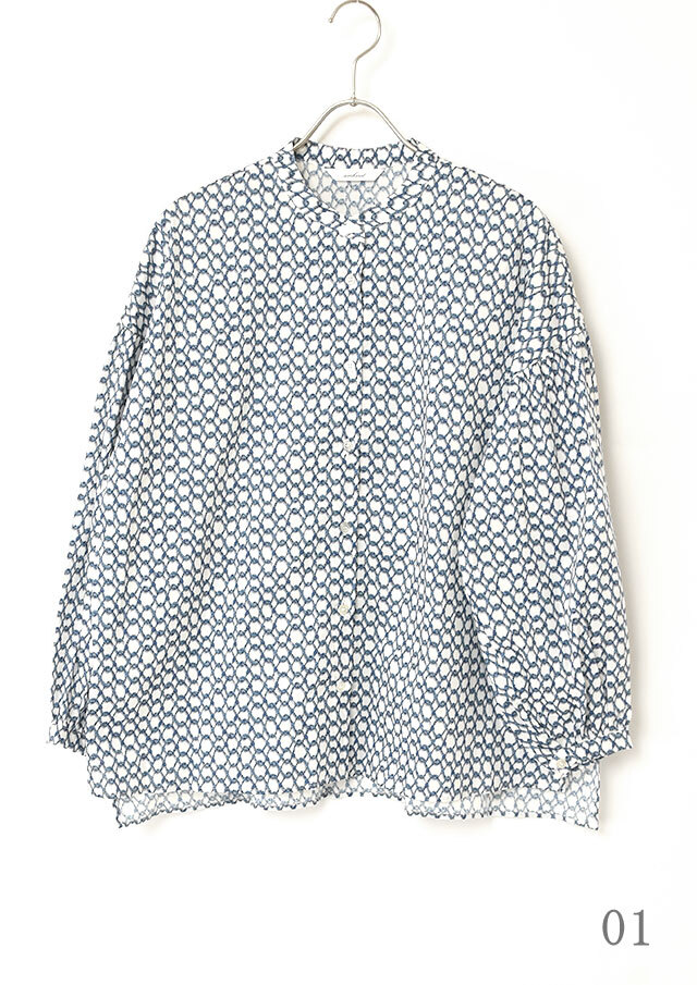 一枚で着ると、ふんわりとした袖のボリュームとバンドカラーのスッキリ感が際立ち、程よく力の抜けた印象に。