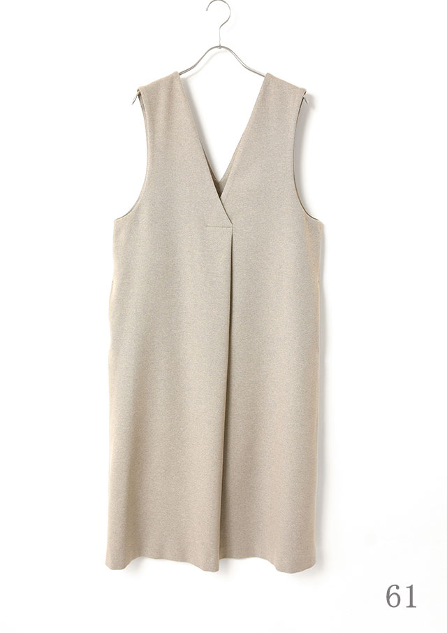 バンドカラーが首元をスッキリと見せ、落ち着いた印象に。